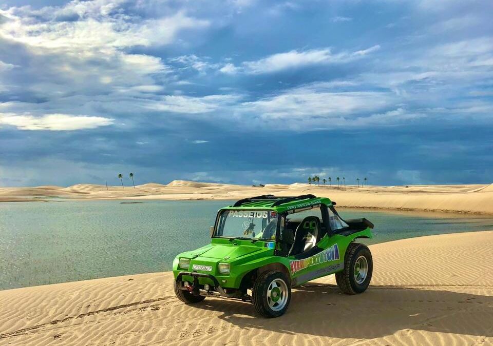 Faremos um mini rally de 12km com duração média de 01hs de trilha até chegar ao Parque Nacional dos Lençóis Maranhenses. É proibido a entrada de veículos automotores no Parque, então continuaremos o trajeto a pé junto com o guia local, a caminhada é breve em quanto o guia passa algumas informações e todos aproveitam a paisagem e um bom banho.